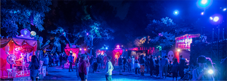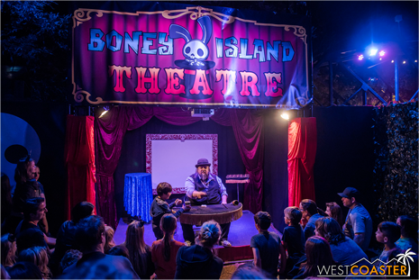 Did he ever. Trick-or-treaters rock to the beat of the Skeletones, behold the spine-tingling fortune teller and thrill to the creepy carcass hawking his “rotten candy.”